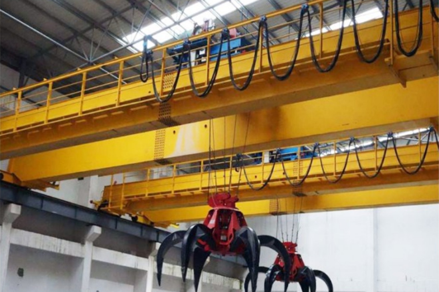 2、整機(jī)由箱型橋架、大車運(yùn)行機(jī)構(gòu)、小車、液壓抓斗、電氣設(shè)備五部分構(gòu)成,工作級別:A8。